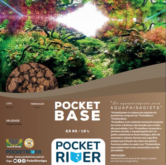 PocketBase é um substrato estrutural composto de rochas vulcânicas selecionadas que contém alta porosidade. Com PocketBase compondo a primeira camada, o aquapaisagista tem um ganho substancial na fauna biológica, além de aumentar o volume, fornece uma superfície propícia para fixação das raízes das plantas. Funciona melhor se usado com pocketsollum que também tem como característica sua alta porosidade.
